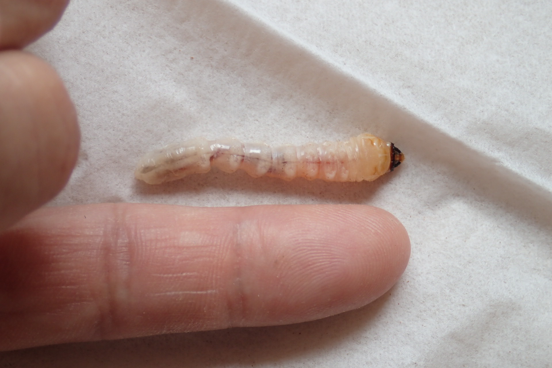 その窪みに幼虫を置いたところ。