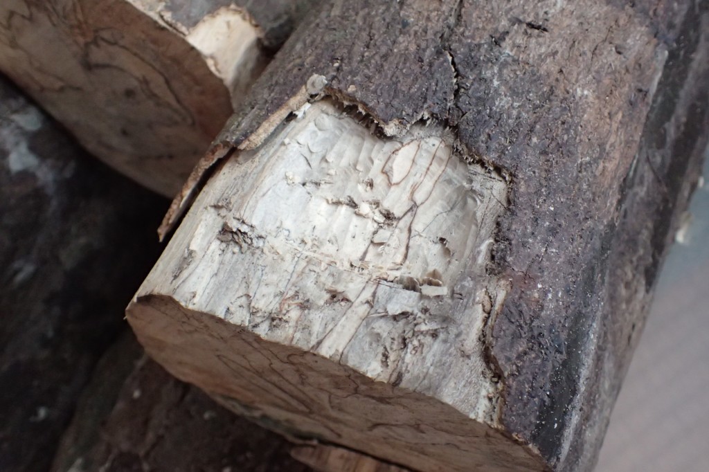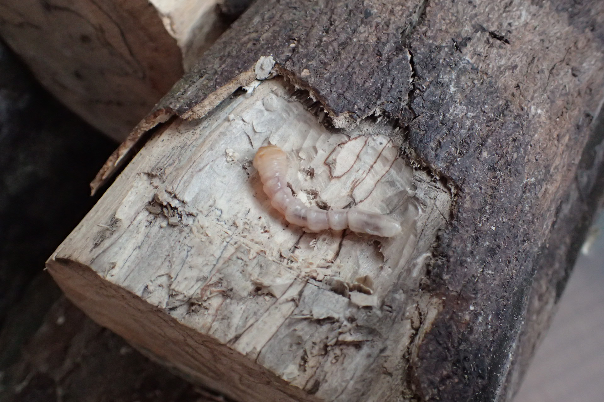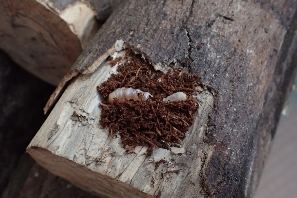 野外でカミキリの材を採取している際、幼虫の坑道を壊しすぎたり樹皮を剥がし過ぎたりした結果、