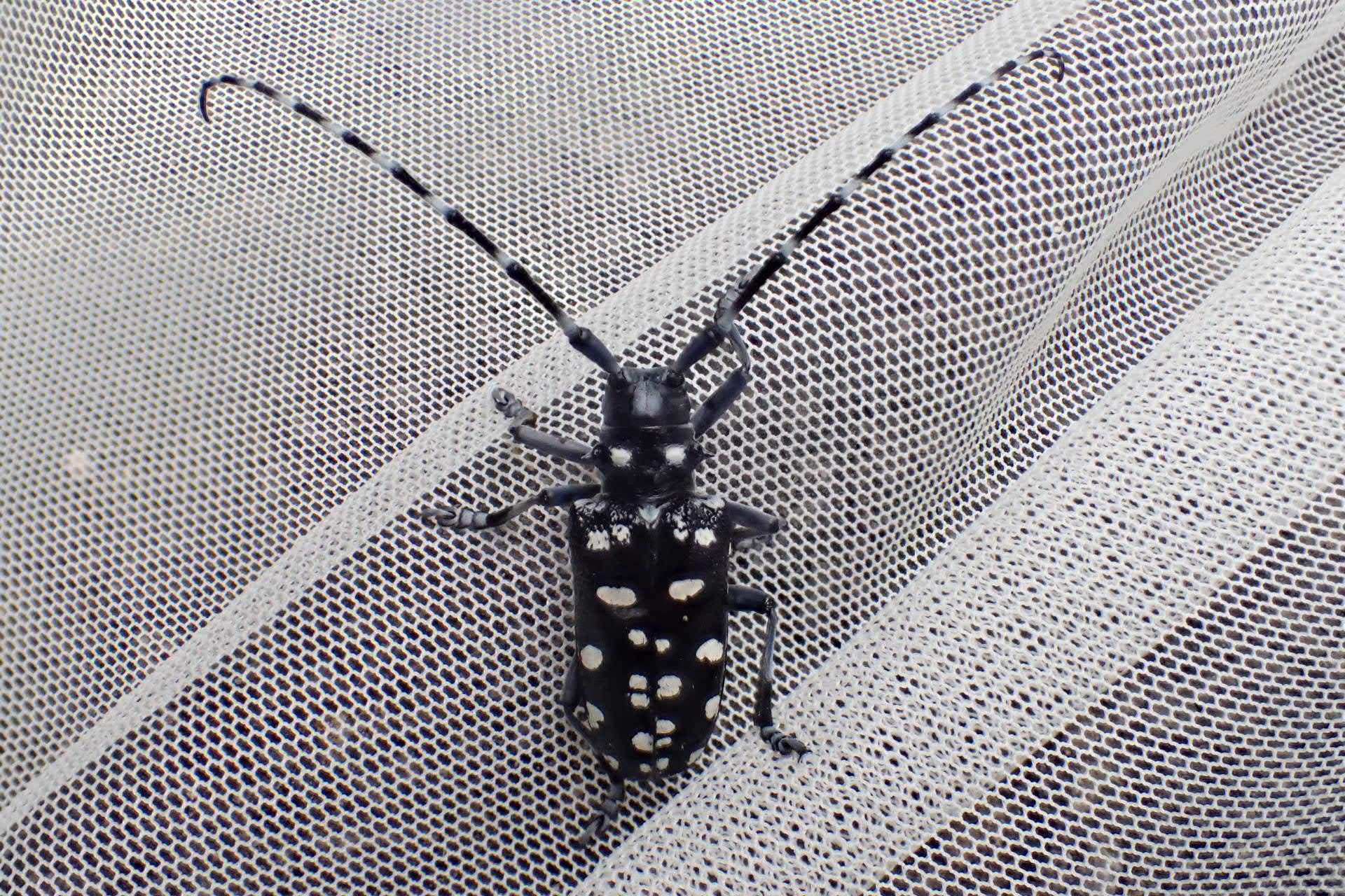センダンの梢を掬っていたら入ったタイワンゴマダラカミキリ。