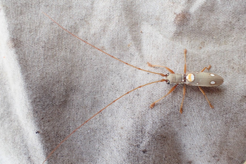 枯葉と粗朶を交えた茂みから幾つか落ちて来たヨナグニゴマフカミキリ石垣亜種(イシガキゴマフ)。