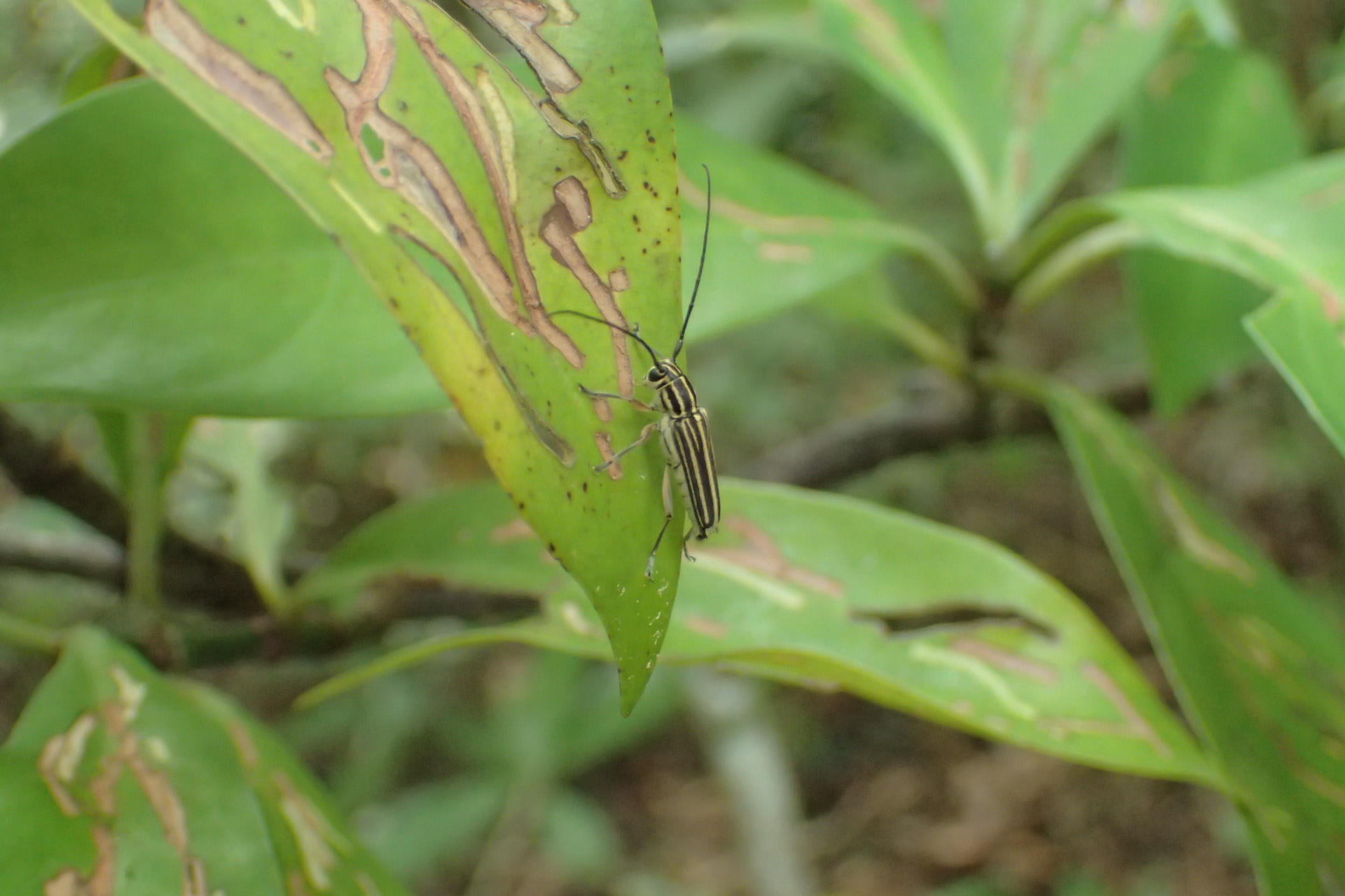 まずは原生林の林床でひっそりと活動するスジシロカミキリです。