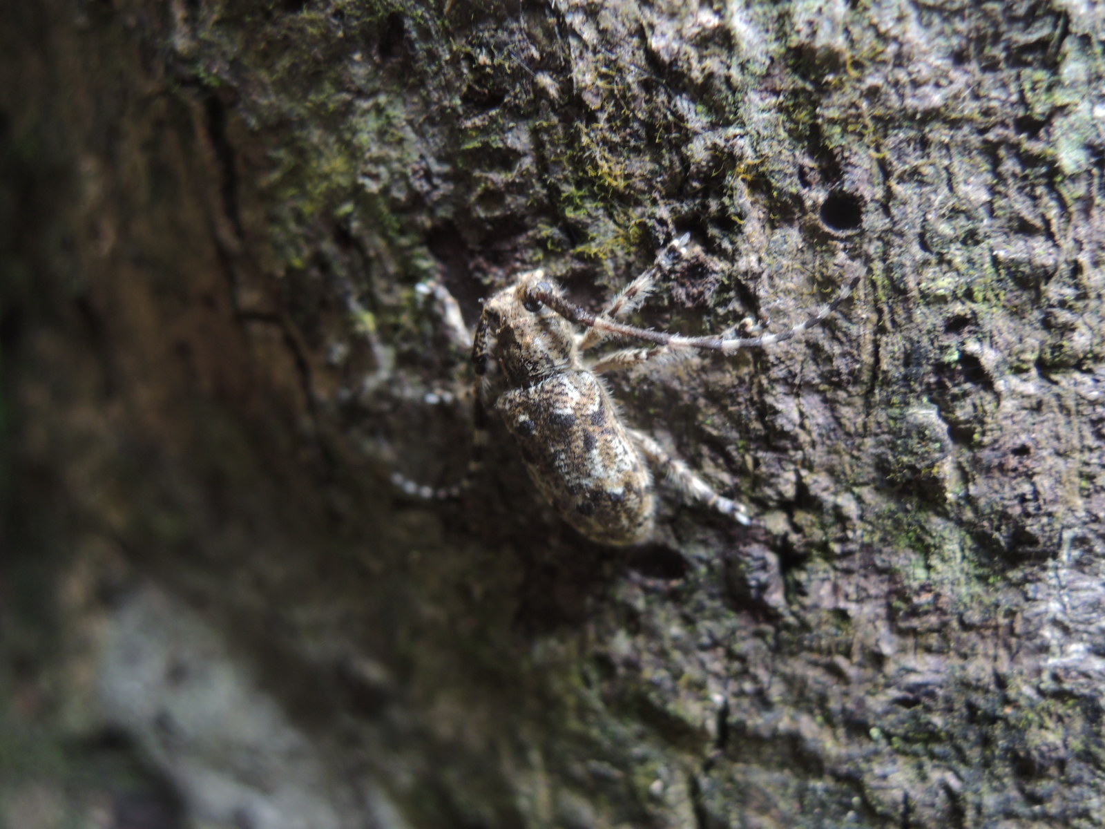 まずはコクタンの枯れ枝にピッタリと張り付くように静止するヤエヤマゴマフカミキリ。