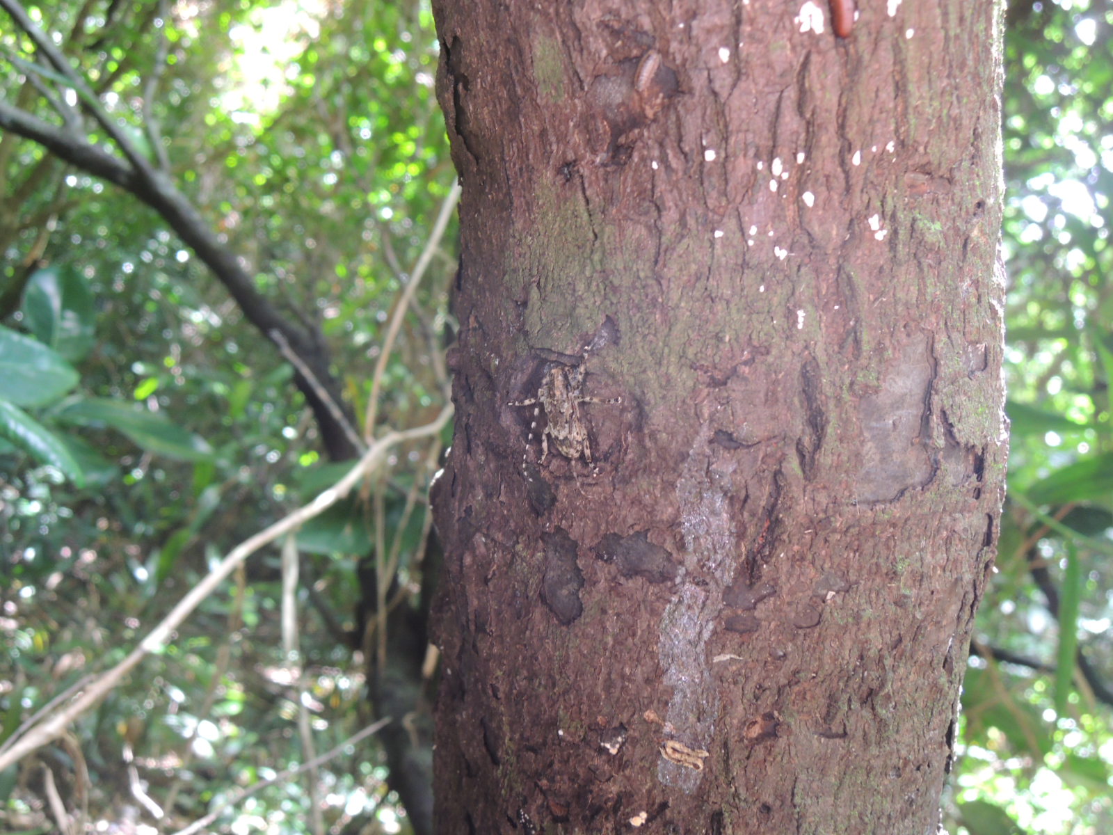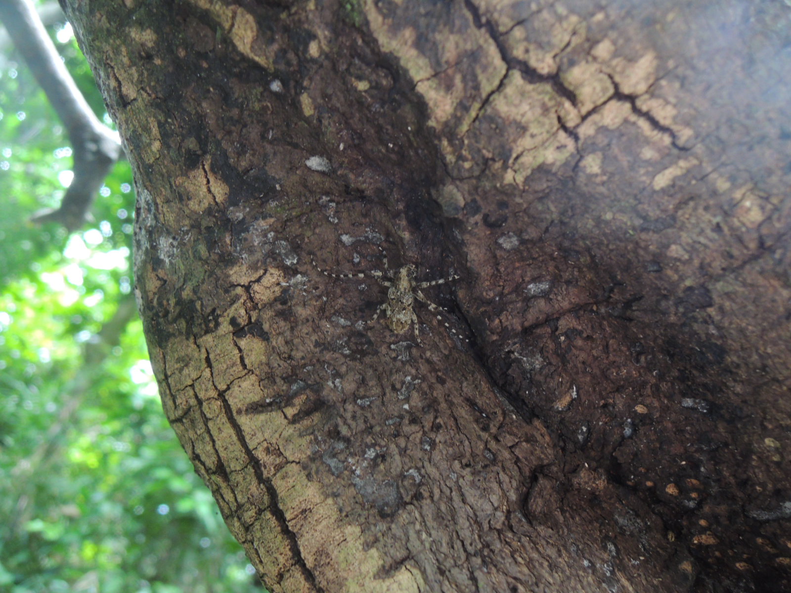 暗い部分にクモのようにペタッと張り付いたヤエヤマゴマフカミキリを発見できます^^